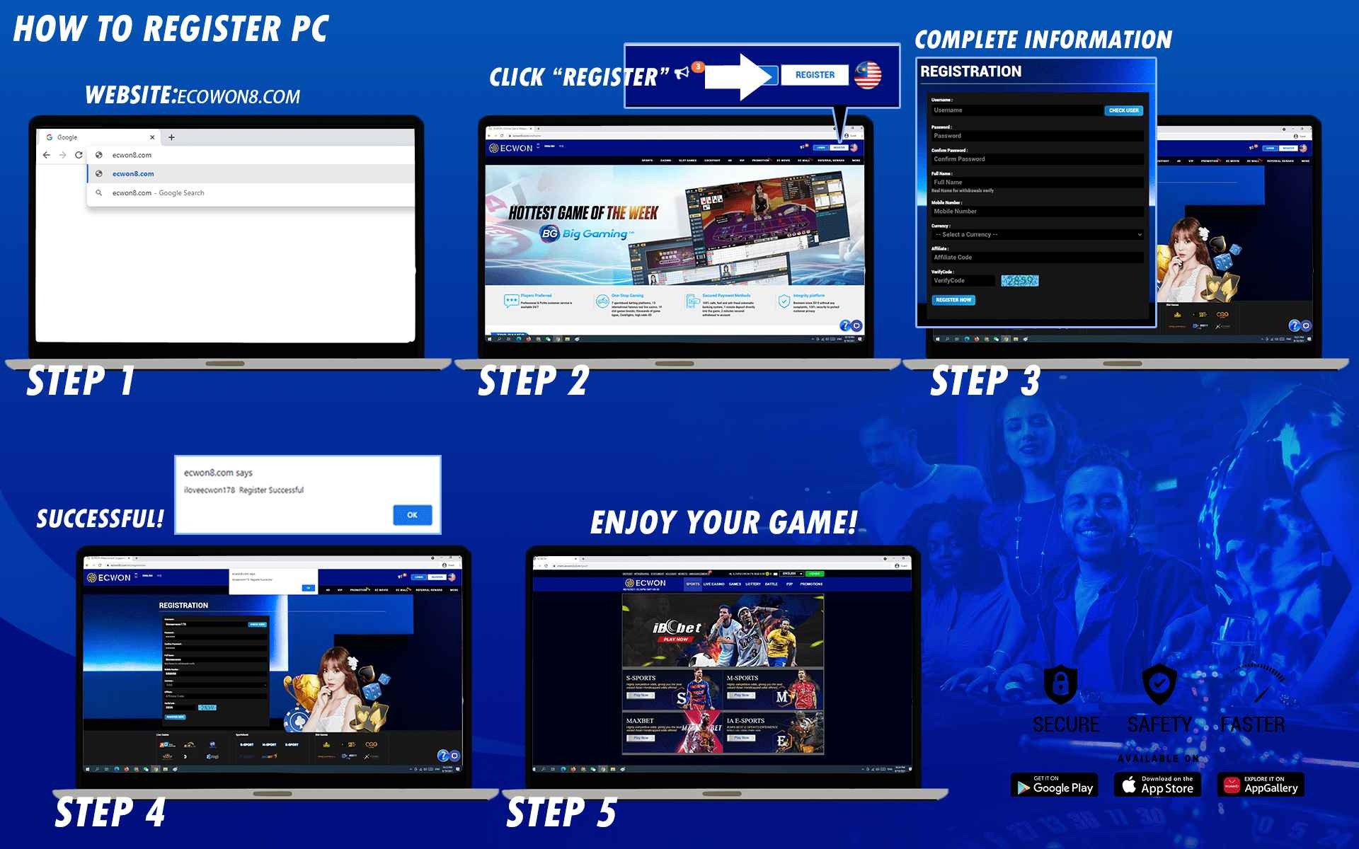 Please refer to the following steps for Register on PC :