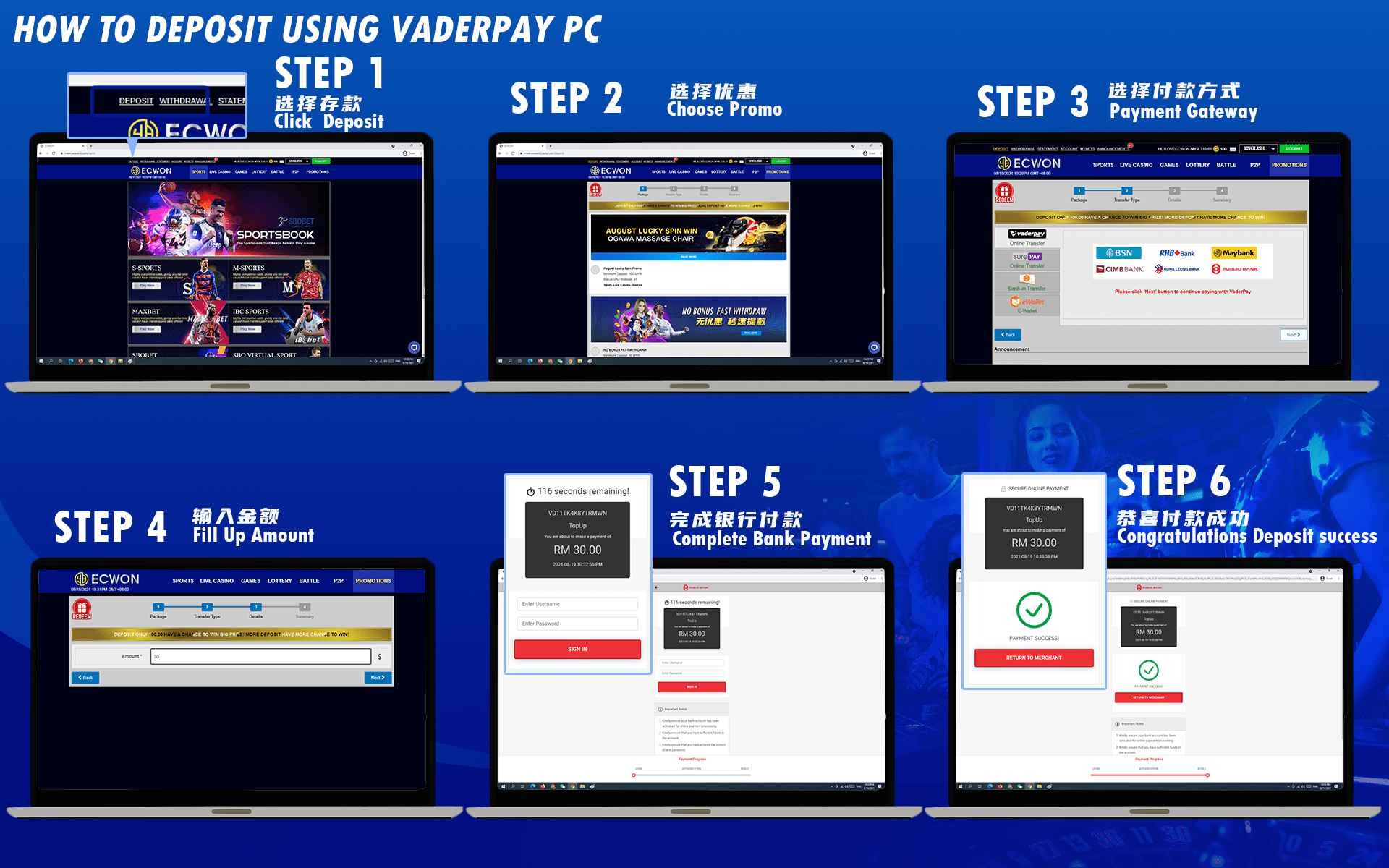 Please follow these steps to make a deposit :